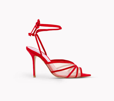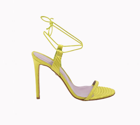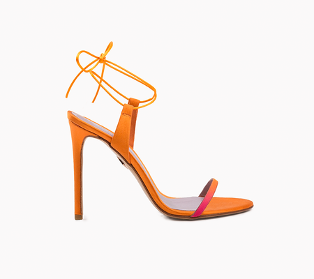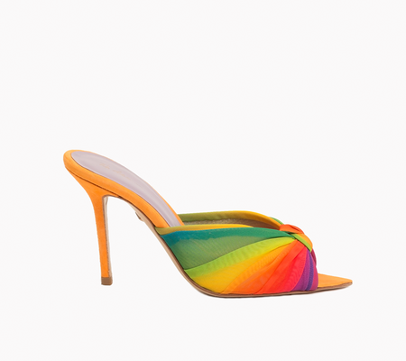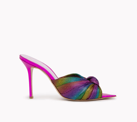 The collection is largely informed by an overarching theme of unison which is depicted through interlockings, knots & sinuous ropes, in magnetic colourways & textures, from ribbed chartreuse, tangerine ombré to mustard satins, offering a fresh palette as the colourful heart of the collection. The Bria mesh sandal features multiple single straps on a breathable mesh base, centrally bound together.