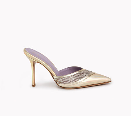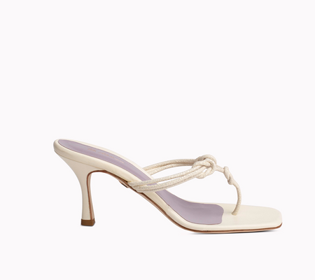 Our Arewa style adapted from the emotive 'Arewa' knot logo from northern Nigeria in the early 1950's, embodies a visceral message of unity in diversity. While our Onigèlè, which means 'the one who ties the head crown' in Yoruba language, pays homage to the everyday Nigerian woman's regal head-tie, gèlè & features a knotted pleat arrangement. S'oké mule, a signature style of Titi Adesa, with its intricate hand-weft loops, is also presented in new colours on a defined comfortable 90mm heel. The ivory nappa tones give an opulent touch to the season's casualism.